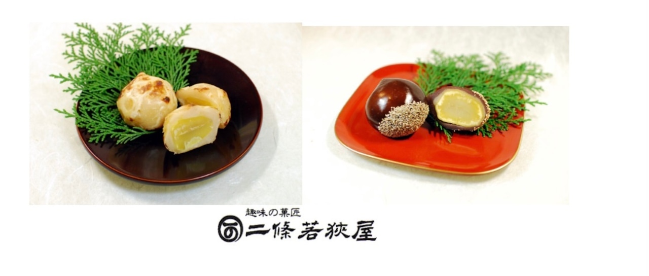 厳選した大粒の栗をまるごと栗餡とこし餡で包み羊羹がけした「ふく栗」と、栗餡で包みこんがりと焼き上げた「やき栗」の詰め合わせ。