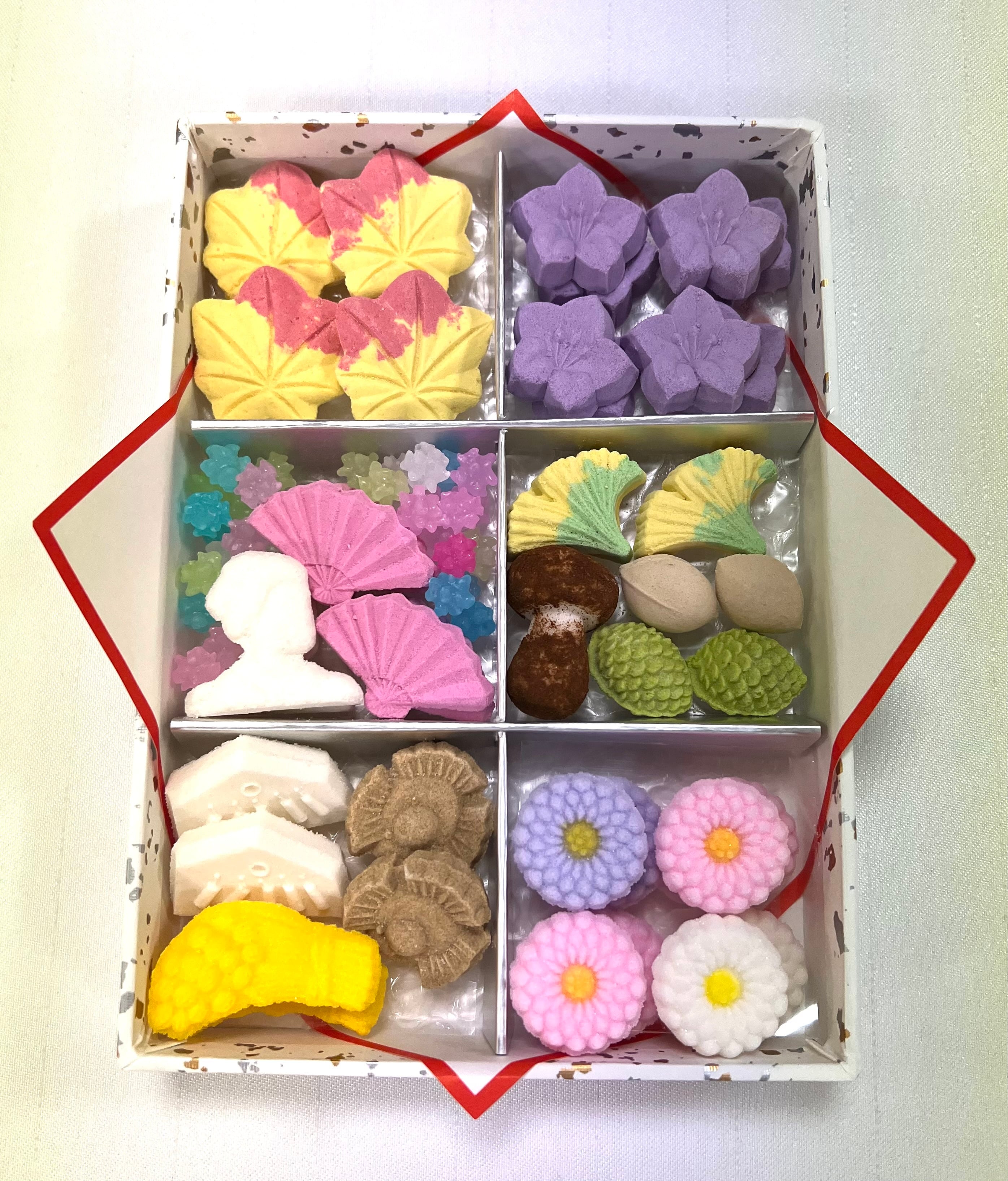 和三盆糖を主原料に型押しした干菓子の詰め合わせ。