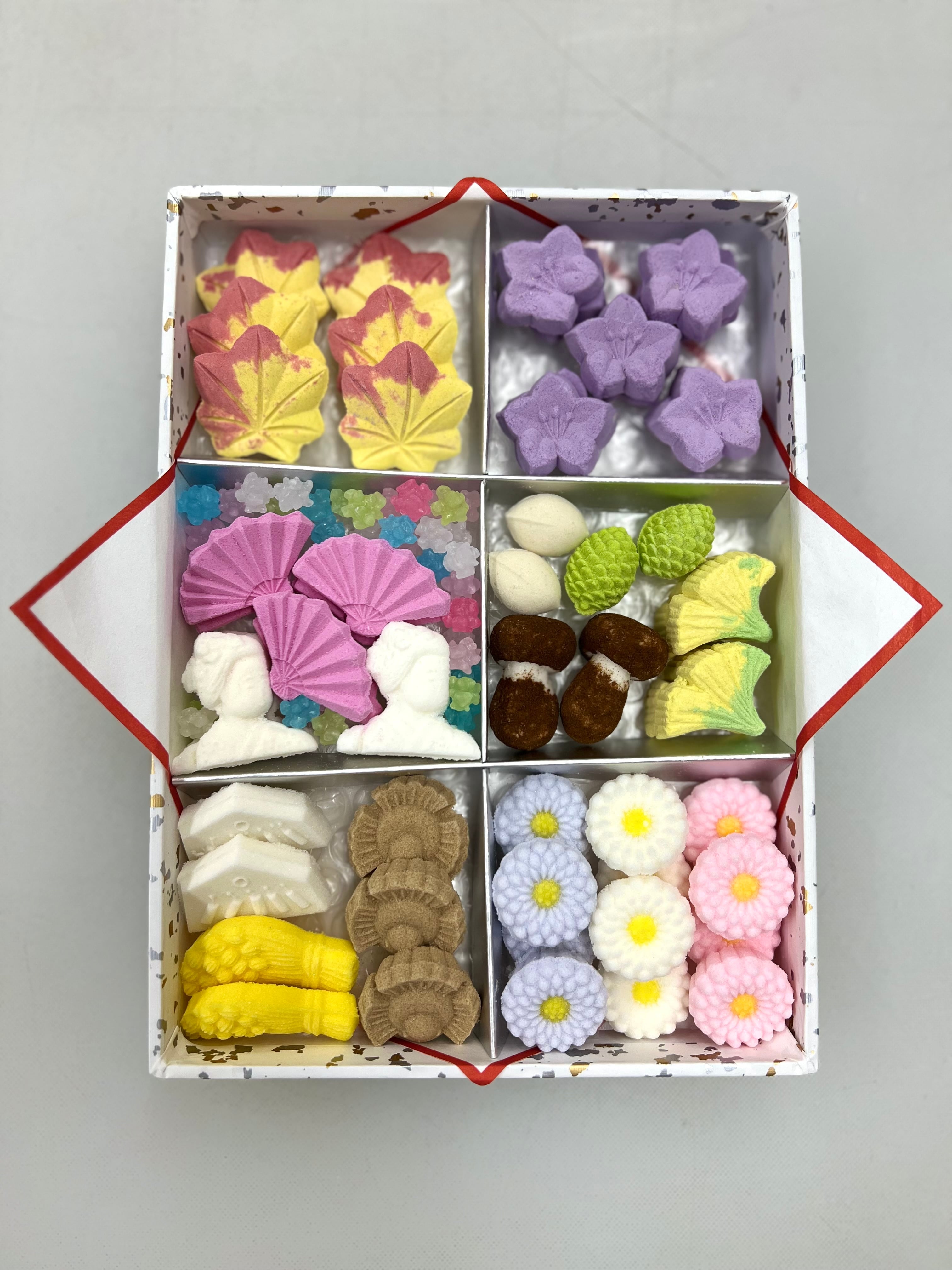 和三盆糖を主原料に型押しした干菓子の詰め合わせ。