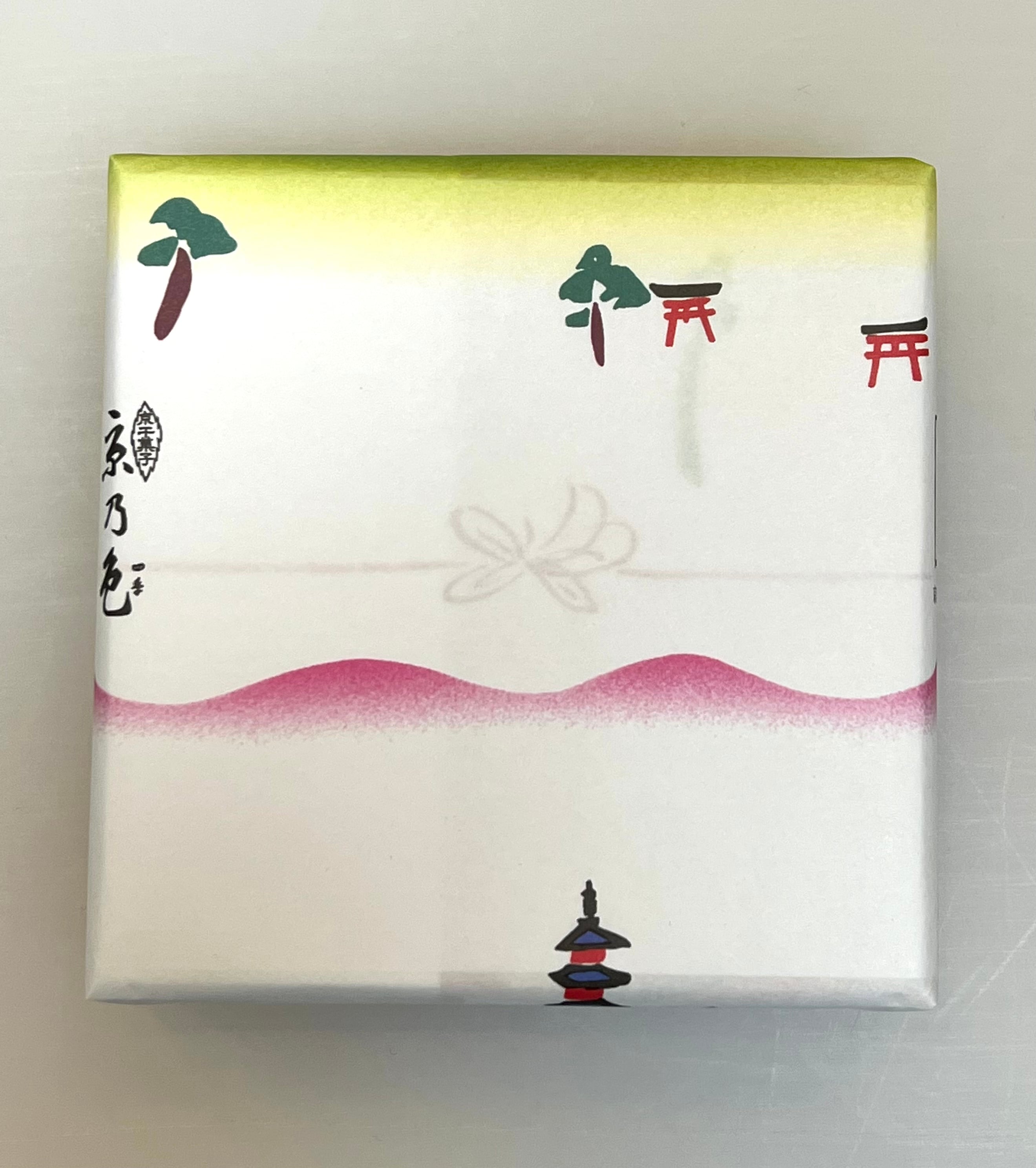 「京乃色」は春夏秋冬の季節に合わせ、内容が年4回変わり、四季折々の風情が感じとれる定番の品です。(現在の内容は写真の通り春バージョンです。)
